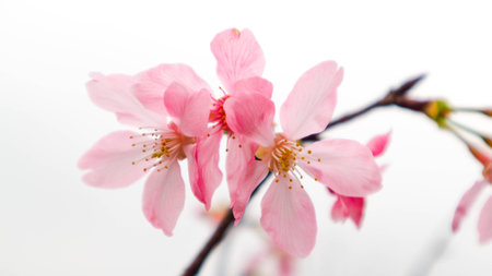 This image showcases delicate pink cherry blossom blooms set against a softly blurred background, creating a serene and harmonious floral scene perfect for seasonal themes.