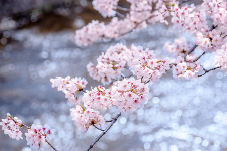 Beautiful cherry blossom in full bloom in springtime,sakura flower,cherry blossom festival season in japan