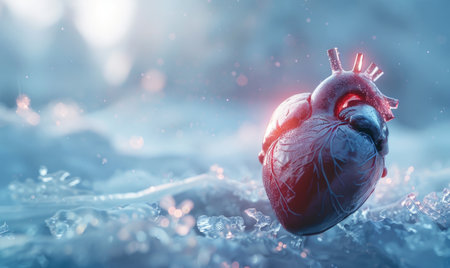 Realistic model of a human heart submerged in a block of ice