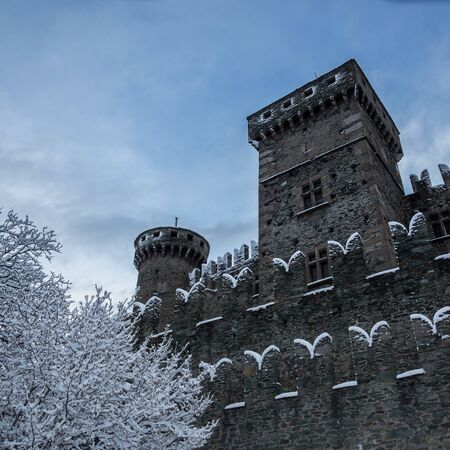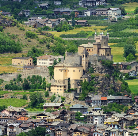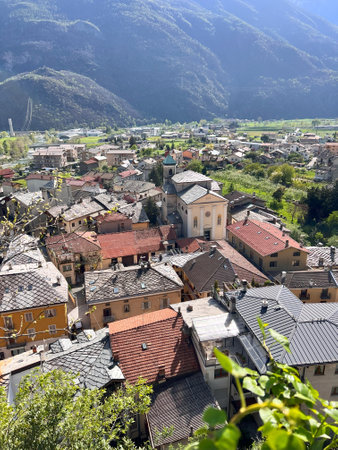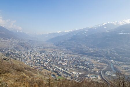 Panoramic view of Saint-Vincent, a commune in the autonomous region of Valle d'Aosta. A mountain pass from the Aosta Valley to the Ayas Valley, one of the best places in Brusson, Italy