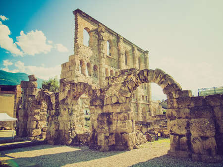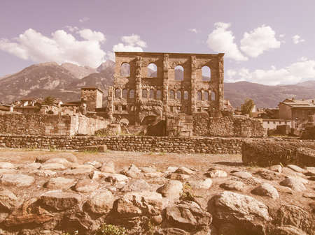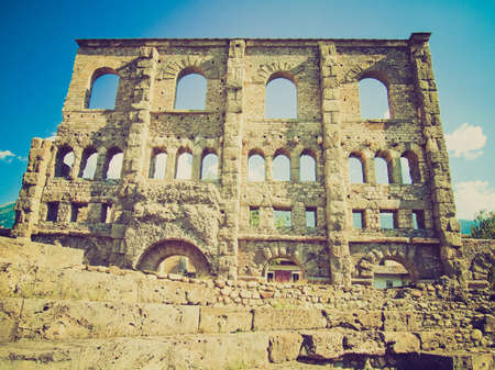 Vintage looking Ruins of the Roman Theatre in Aoste Italy