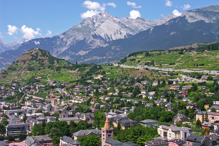 The beautiful city of Sion nestled in the mountains offers breathtaking landscape in Switzerland