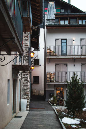 The village Palleusieux under a big mountain, in the Basin Pre-Saint-Didier, Aosta Valley at the time of corona virus outbreak, northern Italy