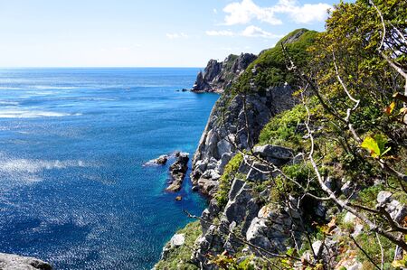 Beautiful blue sky and green and natural scenery of the sea in Kitanagato Coast Quasi-National Park
