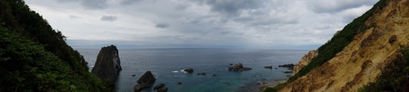 Panoramic view of Cape Hedo, northern most part of Okinawa, Japan