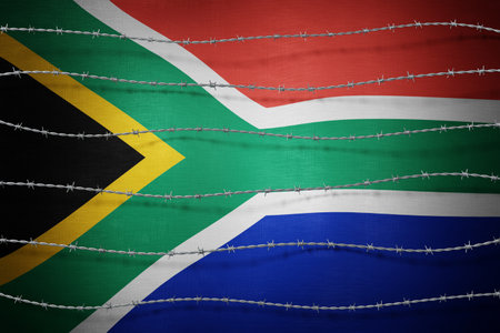 South Africa flag and barbed wire - 3d illustration