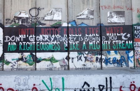 Bethlehem, Palestinian Authority, January 28, 2020: A high wall covered with grafitti, separating the Palestinian Authority from Israel in Bethlehem's hometown of King David and the birthplace of Jesus.