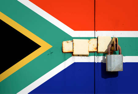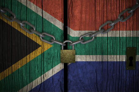 South Africa flag on texture. Template. Coronavirus pandemic. Countries are closed. Locks.