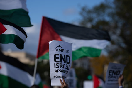 Washington DC, USA - October 21, 2023: Pro-Palestine, anti-Israel protesters. Israel and Hamas in the Gaza Strip. War between Israel and Palestine. Gaza war. Hamas, tsahal and hasbullah war.