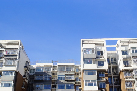 Modern apartment buildings on a sunny day with a blue sky. Facade of a modern apartment building