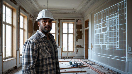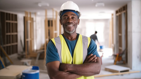 Portrait of African American foreman in house being renovated.