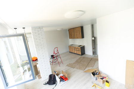Apartment owner renovating and upgrading, documenting the process for inspiration. Copy Space