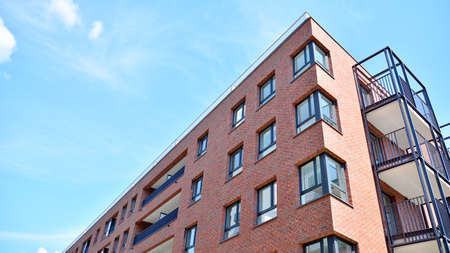 Architectural details of modern apartment building. Modern european residential apartment building complex.