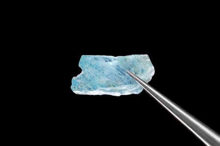 sample of raw grandidierite crystal on black granite background close up from Madagascar