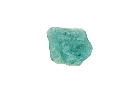 extreme close up of blue Apatite mineral isolated over white background with shallow depth of field