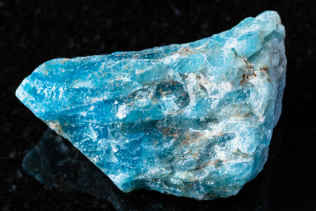 sample of raw indigolite crystal on black granite background close up from Afghanistan