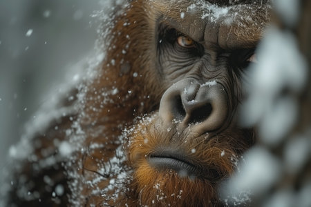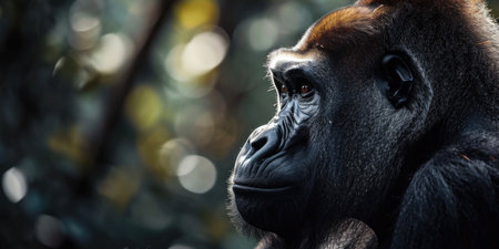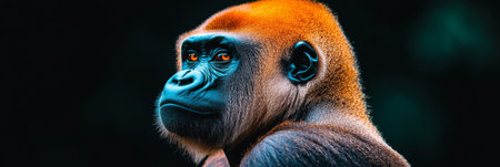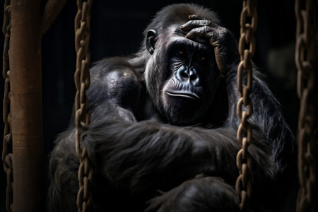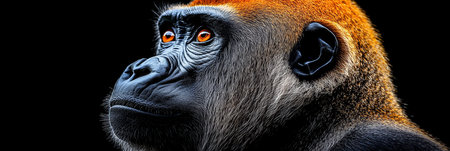 Thoughtful Gorilla Portrait Close-Up on a Dark Background, Blending Animal and Human Emotions
