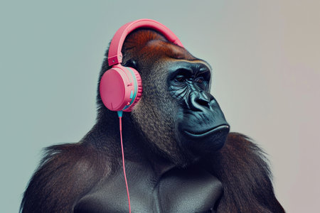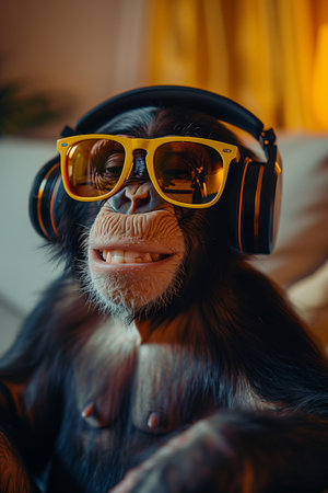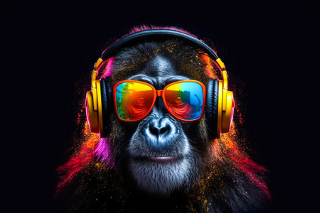 A cool monkey wearing sunglasses and headphones showcases a stylish and vibrant personality. This fun illustration captures a playful vibe, perfect for creative projects.