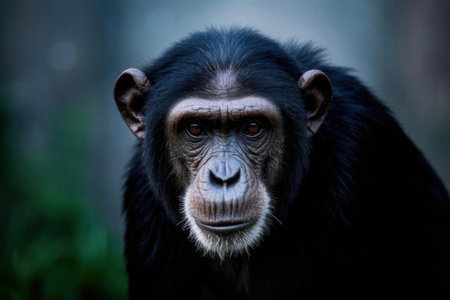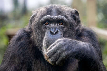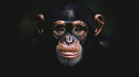 Chimpanzee ape, close up detail of head. Wildlife dark portrait