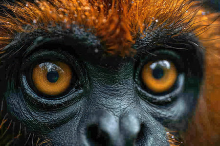 Close-Up of a Gorilla s Face with Intense Orange and Black Fur, Isolated on Black Background