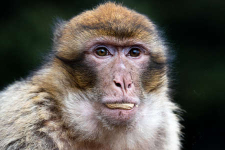 Images of Morocco. Magot monkey swallows peanut with defiant look