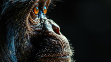 This captivating image captures the profile of a monkey illuminated by soft light, highlighting its thoughtful expression against a dark background.