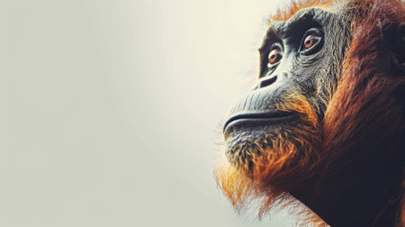 A lonely monkey gazes into the distance, isolated on a white background, emphasizing simplicity and raw emotion.