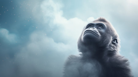 Portrait of a gorilla in a foggy sky. 3d rendering