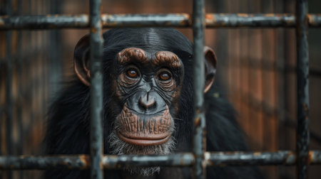 A chimpanzee escaping from its enclosure causes chaos in the zoo. Image generated with Generative AI.