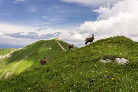 Tatra chamois or KamzÃk vrchovsky tatransky critically endangered (CR) in the early summer in High Tatras region in the Tatra National Park (TANAP), Slovakia.
