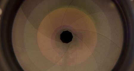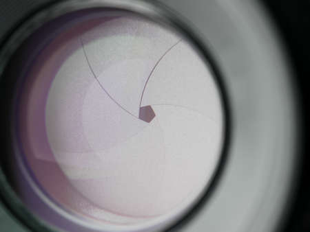 The diaphragm of a camera lens aperture. Selective focus with shallow depth of field.