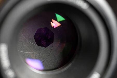 Photography concept. Close up, Diaphragm of a camera lens. Selective focus with shallow depth of field.