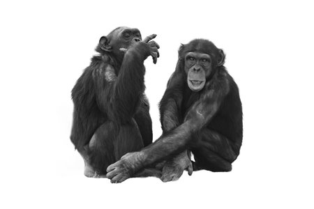 Chimpanzees isolated on a white background. Black and white.