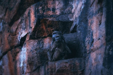 Monkey relaxing in beautiful view waiting for someone.