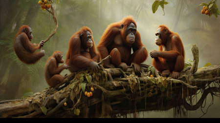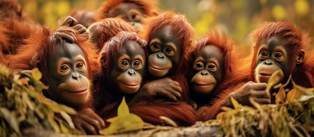 Young orangutans are resting in nature. Generative AI