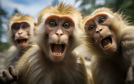 Portrait of a monkey with open mouth and open mouth looking at camera