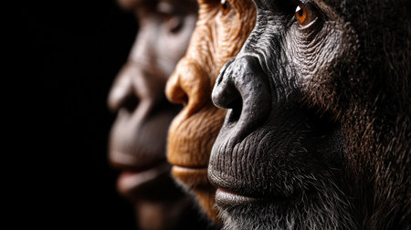 Thoughtful Gorilla Portrait Close-Up on a Dark Background, Blending Animal and Human Emotions