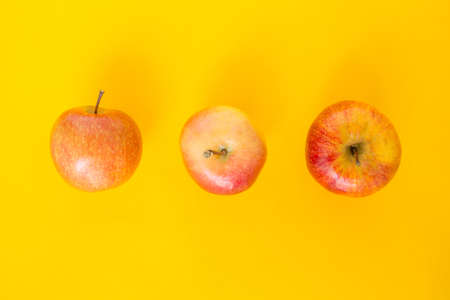ripe red apples on a yellow background.selective focus.