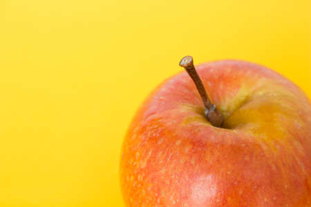 red apple top focus on yellow background