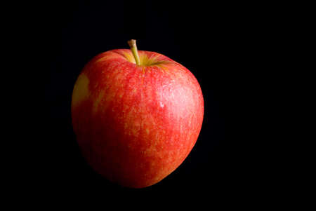One red fresh apple on a black background. Healthy fruit and breakfast