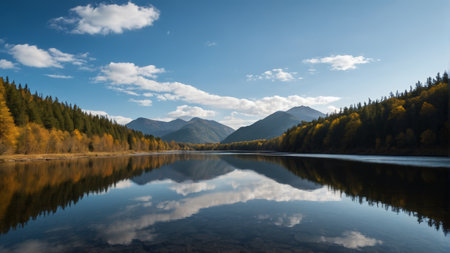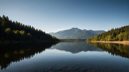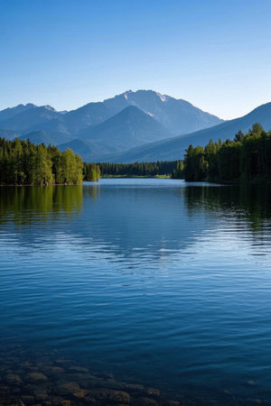 Nestled within towering mountains, this crystal-clear lake mirrors the surrounding nature, creating a breathtaking vista that highlights the beauty of tranquil waters and lush greenery.