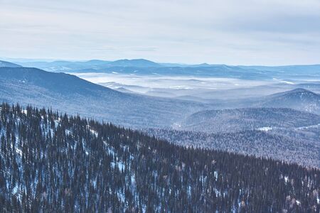 panoramic view mountains. beautiful winter landscape. snow-covered fir forest.