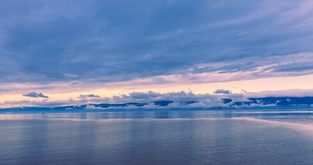 Mountains reflected in the lake at sunset, Alaska, USA.