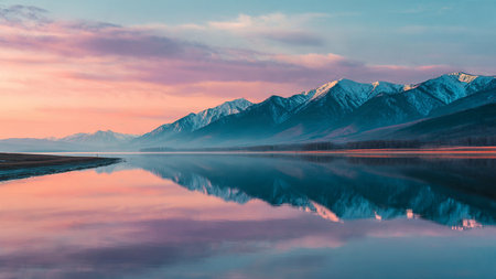 A Serene Body of Water Glimmering Beneath Majestic White Mountain Peaks
