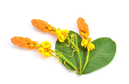 Yellow candle bush flower on white background