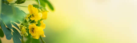 Summer nature wallpaper. Yellow flowers of African senna or peanut butter cassia