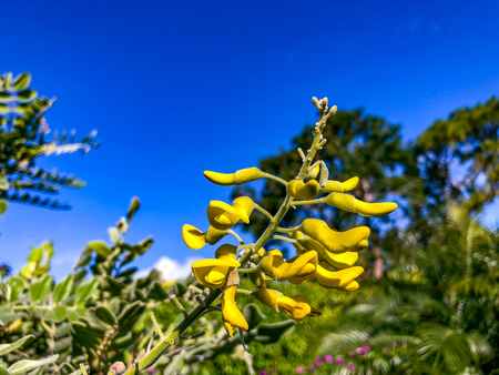 yellow flowers on a necklacepod tree (Sophora Tormentosa)