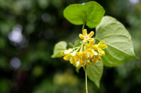 Cowslip creeper flowers with leaves on the tree