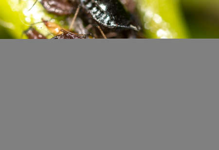 Black aphid on the grass or stem. Family of aphis damaging garden