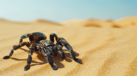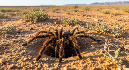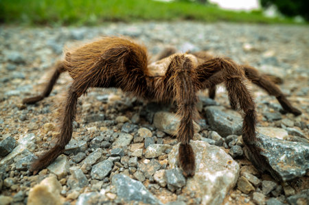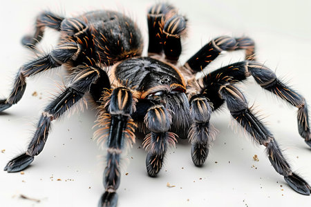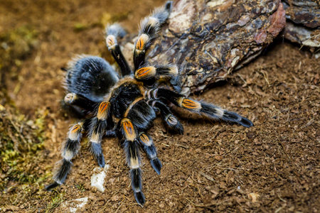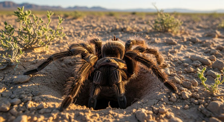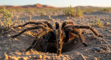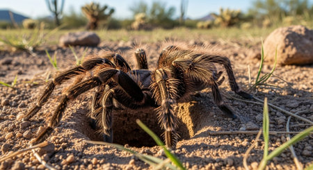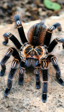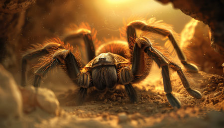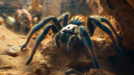 Detailed macro shot of a tarantula in its natural habitat, showcasing intricate spider details